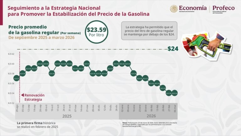 Precio de la gasolina en México se mantiene por debajo de 24 pesos tras estrategia del Gobierno federal